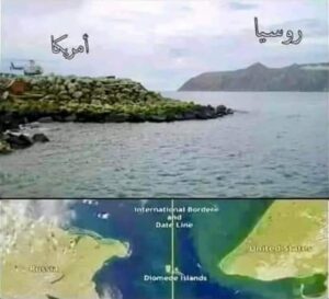 جزيرتين يمكن المشي بينهما خلال فصل الشتاء لأن المياه تكون متجمدة، و لكن الفرق الزمني الشاسع يمكن أن يغيّر الأحداث العادية بطرق عجيبة، فعندما يكون الوقت عصراً في الجزيرة الروسية يكون أيضاً الوقت عصراً في الجزيرة الأمريكية، لكن في الجزيرة الروسية عصر اليوم، و في الجزيرة الأمريكية عصر الأمس، أي إذا كنت تسكن في الجزيرة الروسية و قررت الذهاب “عصر يوم 12 أبريل” لزيارة صديق يسكن في الجزيرة الأمريكية سوف تصل “عصر الأمس 11 أبريل”.