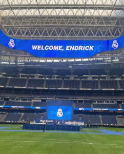 يقدم فريق ريال مدريد اليوم لاعبه الجديد البرازيلي إندريك ،ستكون البداية مع الفحص الطبي ومن ثم الذهاب إلى المدينة الرياضية لتوقيع العقد والذي يمتد حتى 2030.