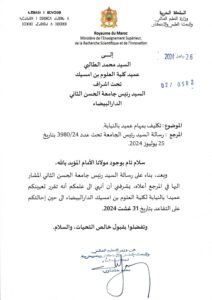 مما يعني أن العميد محمد الطالبي أصبح نائبا للعميد عوض عميد إلى  حين تعاقده نهاية الشهر الحالي.