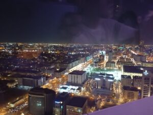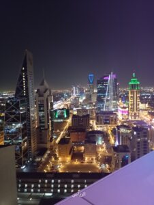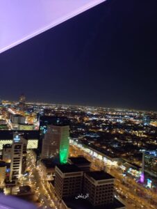 بإطلالة على الرياض من الدور الحادي والعشرين ( 21) لبرج الفيصلية وسط المدينة، حيث أحد المطاعم الفرنسية المصنفة café du paris، والذي يحكي قصة تميز بدأت منذ 1930،يمكنك أن ترى المعالم الحضارية للعاصمة السعودية ،ابراج المملكة المؤسسة الرائدة والتي يديرها أحد أغنياء العالم ،الامير الوليد بن طلال وأبراج الفنادق حياة رجنسي وهذه هي الحياة ……الخ ومقاهيها وغيرها من المؤسسات السياحية  بتصاميمها  المثيرة  والرائعة والحديثة، كما ستتمكن من الاستمتاع بامتداد الرياض واتساعها من الجهات الأربعة وبديناميتها الليلية التي لا تتوقف .