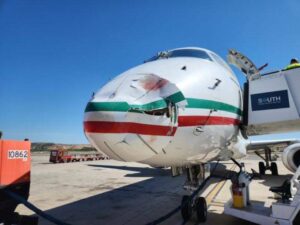 شهد مطار مدريد الدولي حادث اصطدام طائرة من طراز Al-Ambray 190 تابعة للخطوط الملكية المغربية، برقم تسجيل CN-RGO، بسرب من الطيور أثناء عملية الهبوط. الحادث تسبب في أضرار كبيرة في مقدمة الطائرة وغطاء الحماية الأمامي، إلا أن الحادث لم يؤثر على سلامة الركاب أو الطاقم. حيث هبطت الطائرة بسلام بفضل خبرة الطاقم وتقنيات الأمان المتقدمة.