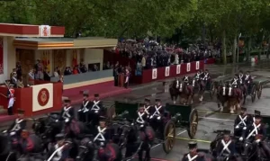 الملك فيليبي السادس حضر العرض العسكري إلى جانب رئيس الوزراء بيدرو سانشيز وكبار الشخصيات السياسية والعسكرية في البلاد. وخلال الحدث، برزت الأميرة ليونور، وريثة العرش، وهي ترتدي زيها العسكري للمرة الثالثة، بعد التحاقها بالخدمة في الأكاديمية البحرية. حضور الأميرة ليونور يعكس دورها المتزايد في الحياة العامة في إسبانيا، حيث يتم إعدادها لتولي واجبات ملكية مستقبلية. وكان ظهورها محط أنظار الجماهير والإعلام.