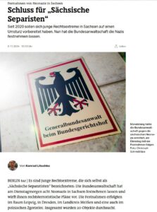 ووفقًا لبيان صادر عن المدعي العام الفدرالي الألماني، فإن المعتقلين متهمون بالانتماء إلى جماعة تُدعى “الانفصاليين الساكسونيين“. تتكون هذه الجماعة النازية من 15 إلى 20 عضوًا يحملون أيديولوجيات عنصرية ومعادية للسامية، ويعتقدون بضرورة التخلص من النظام الديمقراطي الليبرالي في ألمانيا. وتهدف الجماعة إلى الإطاحة بالنظام الديمقراطي في ألمانيا من خلال تأسيس نظام سياسي مستوحى من الاشتراكية القومية، يبدأ بتولي الحكم في ساكسونيا ثم توسيع سيطرتها إلى الولايات الشرقية الأخرى.