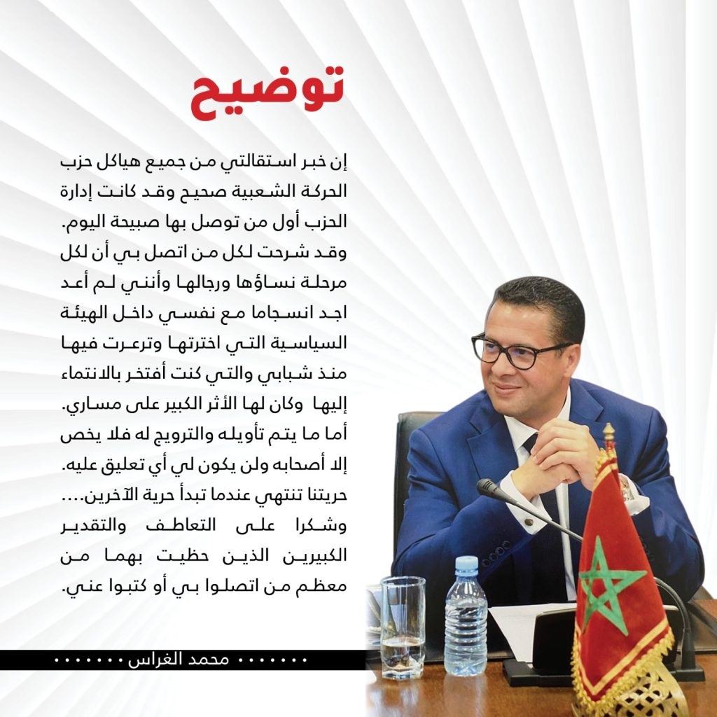 الوزير السابق محمد الغراس يعلق على استقالته من حزب الحركة الشعبية