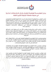 كما تسببت الاشتباكات في ”أضرار جسيمة“ في صهاريج التخزين في مصفاة الزاوية لتكرير النفط، بحسب ما ذكرت المؤسسة الوطنية الليبية للنفط.