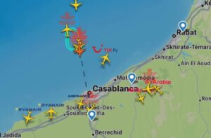 شهد مطار محمد الخامس الدولي بالدار البيضاء، اليوم، ضغطًا استثنائيًا بسبب توافد العديد من الطائرات في وقت زمني متقارب، ما تزامن مع العاصفة الجوية التي تضرب عدة مناطق في المملكة، متسببًا في تأخيرات ملحوظة في عمليات الهبوط.