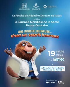 تحت شعار:”Une bouche heureuse…c’est un esprit heureux”،في إطار الاحتفال باليوم العالمي لصحة الفم والأسنان، تنظم كلية طب الأسنان بالرباط بشراكة مع (FDI) و (HALEON) يوم الأربعاء 19 مارس 2025، ابتداءً من الساعة الحادية عشرة صباحًا، فعالية توعوية تهدف إلى تسليط الضوء على أهمية العناية بصحة الفم والأسنان وتأثيرها على الصحة العامة والرفاه النفسي.