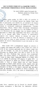 يتواصل ظهور الحقائق التاريخية حول أطماع الجزائر وتحركاتها المتعلقة بالصحراء، حيث برزت مذكرات الناطق الرسمي باسم الأمين العام للأمم المتحدة الفرنسي الجنسية “أندري لوين” في الفترة بين 1972_1975، والتي اشار فيها الى سفره مع الأمين العام الى المغرب والجزائر وموريتانيا ومدريد وجولاته المكوكية ما بين اكتوبر ونوفمبر 1975، ولقائه بوفد جزائري رفيع المستوى في شهر نوفمبر 1975 بمدريد قبل الاتفاقية الثلاثية بأيام.