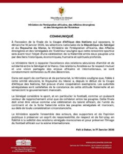 وتابعت الوزارة أن “السنغال تعتبر الرياضة، وكرة القدم على وجه الخصوص، رافعة قوية للتقارب والتلاحم بين الشعوب”، مضيفة أن هذا النهائي “يجب أن يعاش، بالتالي، كاحتفاء بالموهبة الإفريقية، وبوحدة القارة، وبالأخوة المتينة بين الشعبين السنغالي والمغربي، بعيدا عن أي اعتبارات ظرفية”.